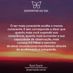 O ser mais consciente acolhe o menos consciente. E isso corresponde a dizer que quanto mais você expandir sua consciência, quanto mais aumentar a sua