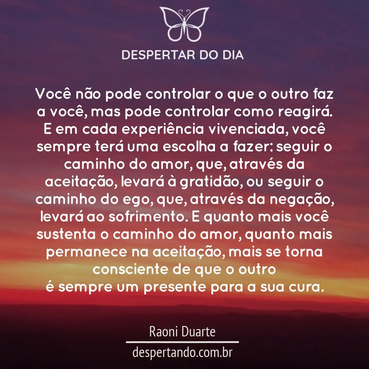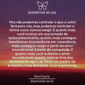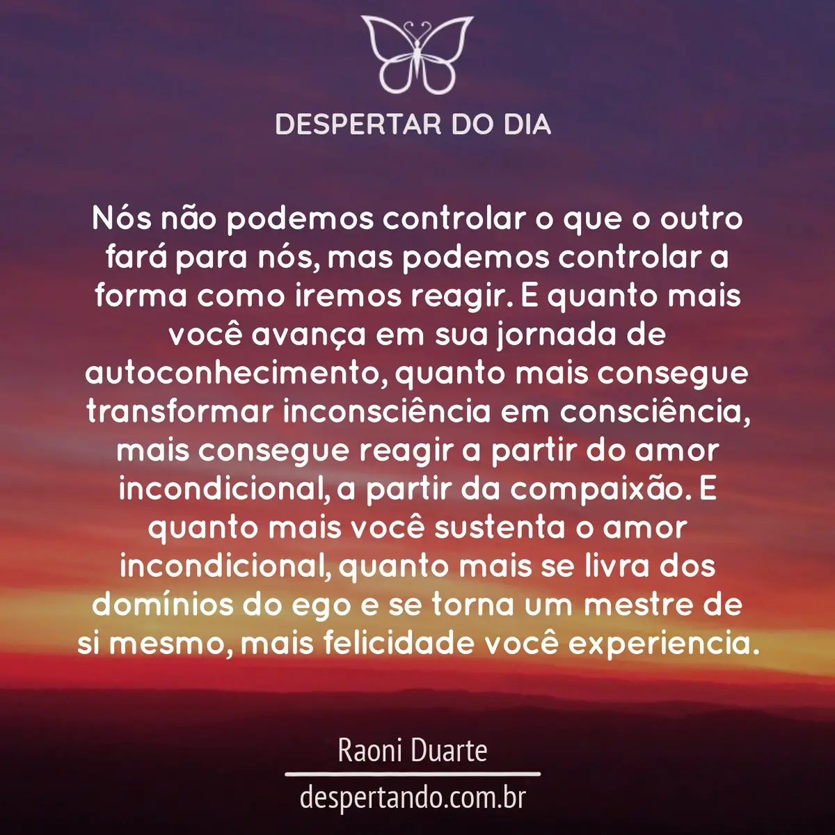 Nós não podemos controlar o que o outro fará para nós, mas podemos controlar a forma como iremos reagir. E quanto mais você avança em