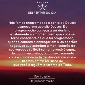 Nós fomos programados a ponto de Deuses esquecerem que são Deuses. E a programação começa a ser desfeita exatamente no momento em que você se