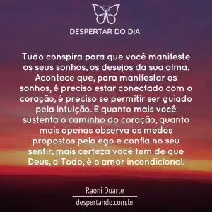 Tudo conspira para que você manifeste os seus sonhos, os desejos da sua alma. Acontece que, para manifestar os sonhos, é preciso estar conectado com
