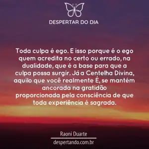 Toda culpa é ego. E isso porque é o ego quem acredita no certo ou errado, na dualidade, que é a base para que a