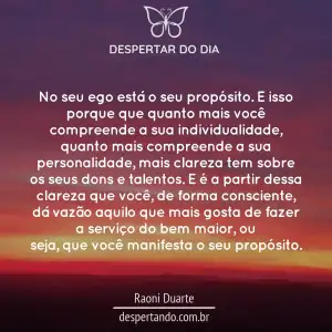 No seu ego está o seu propósito. E isso porque que quanto mais você compreende a sua individualidade, quanto mais compreende a sua personalidade, mais
