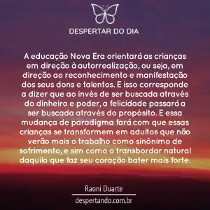 A educação Nova Era orientará as crianças em direção à autorrealização, ou seja, em direção ao reconhecimento e manifestação dos seus dons e talentos. E